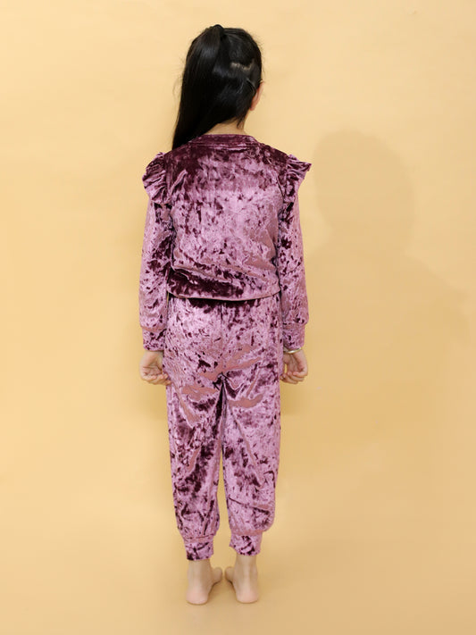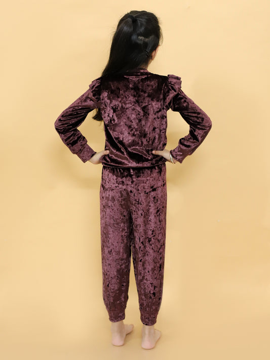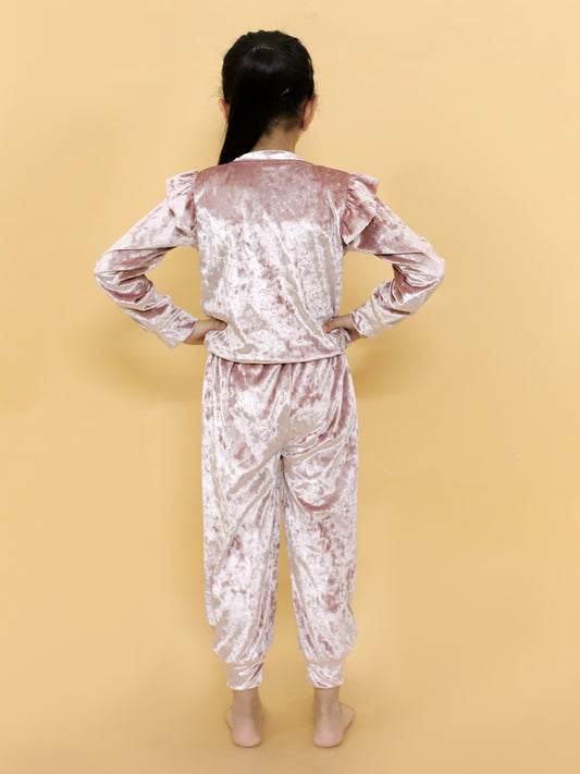 Stuffie Land Girls Self Design Frill Top With Trousers