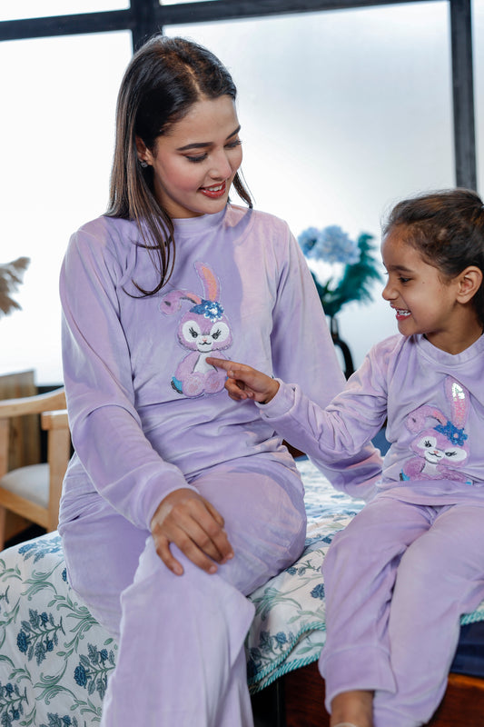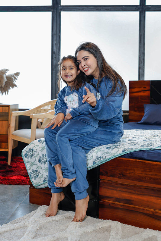 Purple Blue & Gold Mother-Daughter Twinning Set β Elegant Festive winter Wear