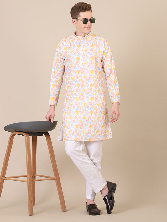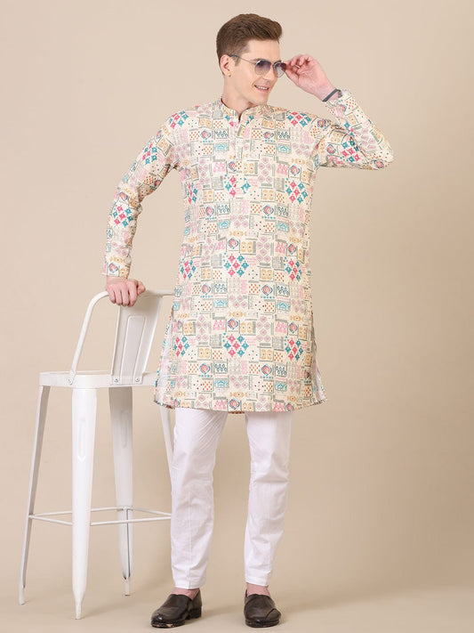Father-Son White Multicolor Geometric Printed Kurta Pajama Combo Set