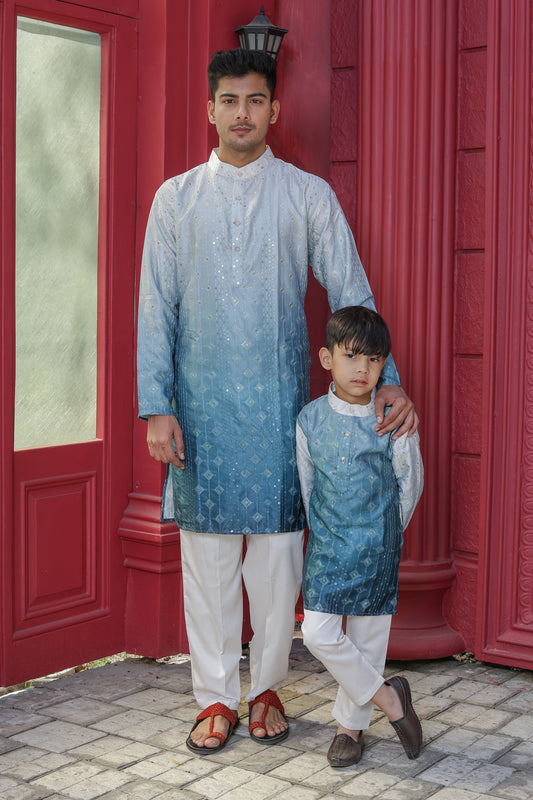 Father-Son Blue Tie & Dye Ombre Kurta Pajama Combo set