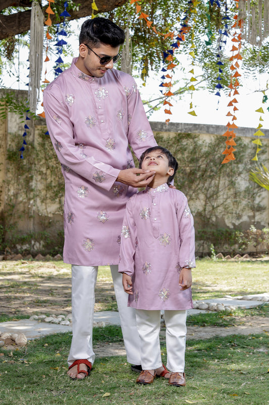 Father-Son Purple Diamond Pattern Embroidered Kurta Pajama Combo Set