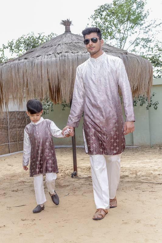Father-Son Brown Ombre Jacquard Kurta Pajama Combo set