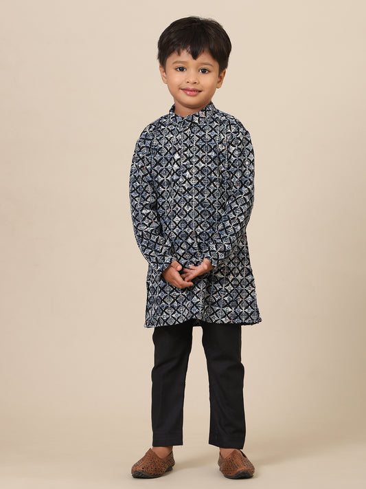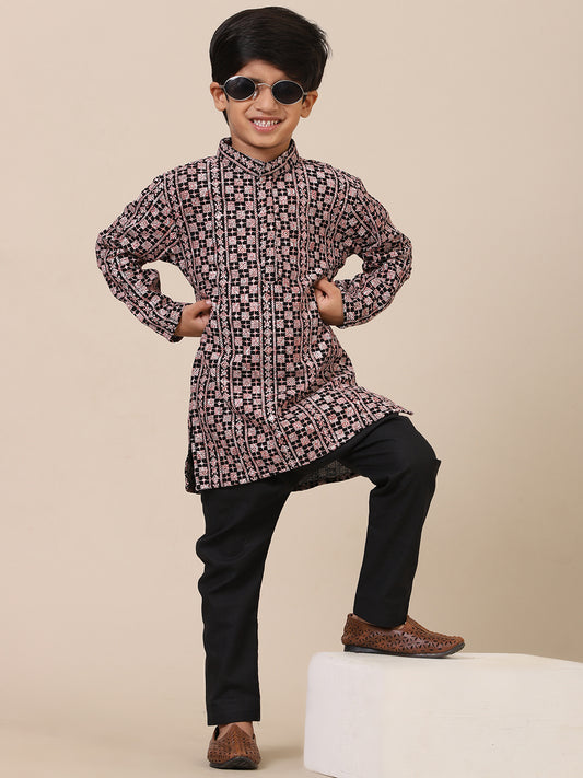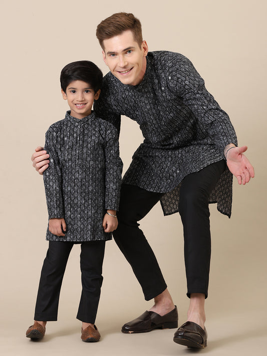 Father-Son Black Geometric Print Kurta Pajama Combo Set