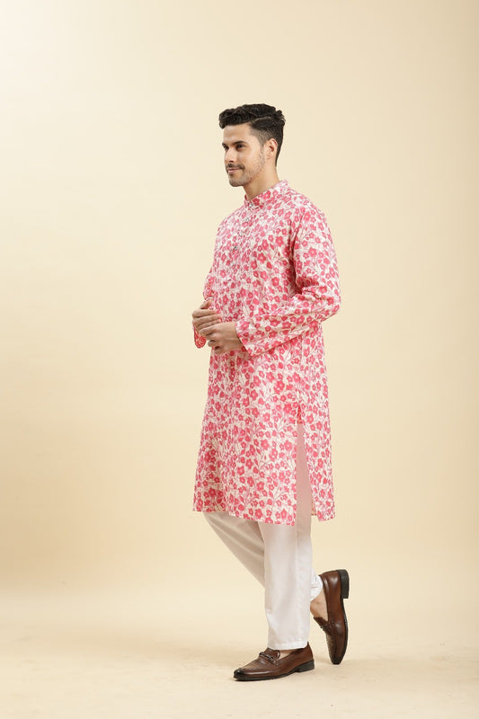 Father-Son Pink Floral Print Kurta Pajama Combo Set