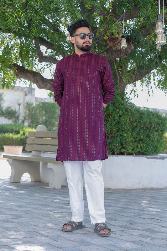 Father-Son Purple Striped Kurta Pajama Combo Set