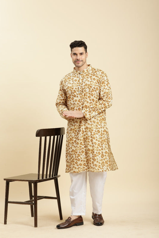 Father-Son Brown Floral Print Kurta Pajama Combo Set