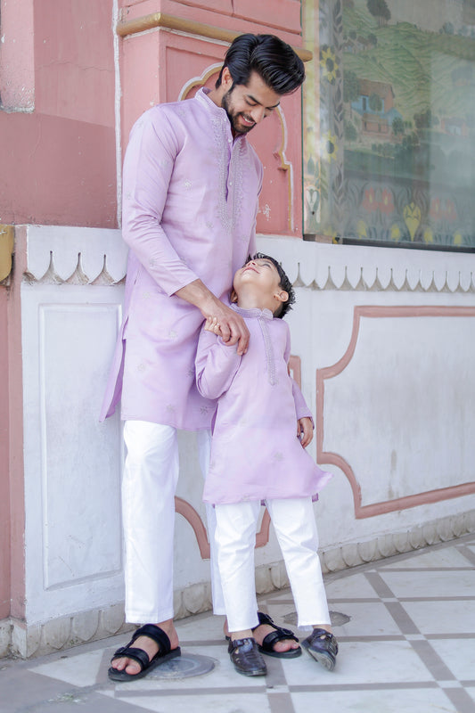 Father-Son Lavender Embroidered Kurta Pajama Combo Set