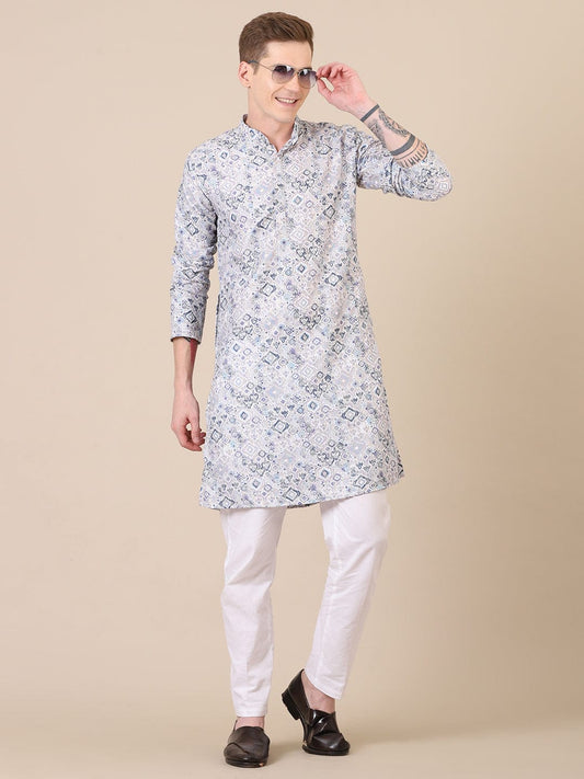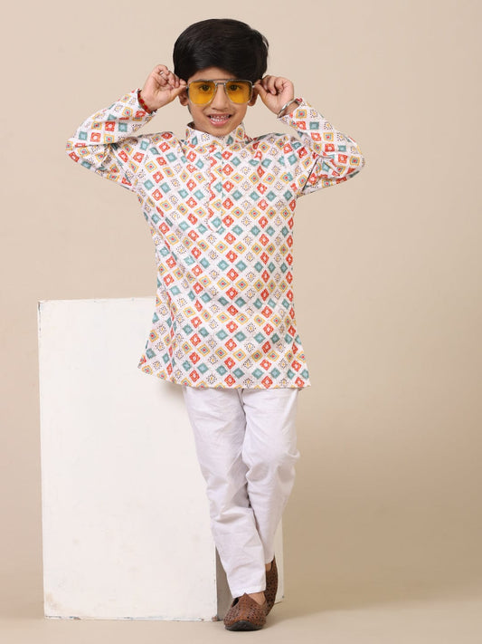 Father-Son White Multicolor Geometric Print Kurta Pajama Combo Set
