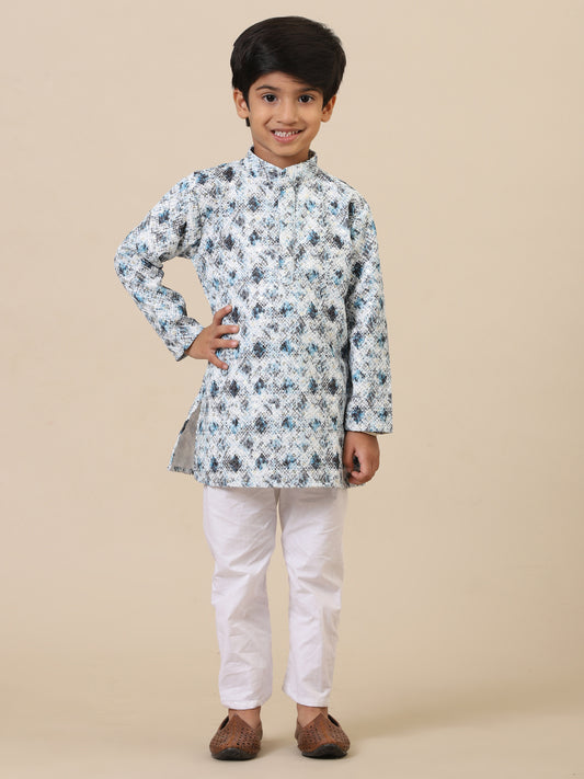 Father-Son Blue Abstract Print Kurta Pajama Combo Set