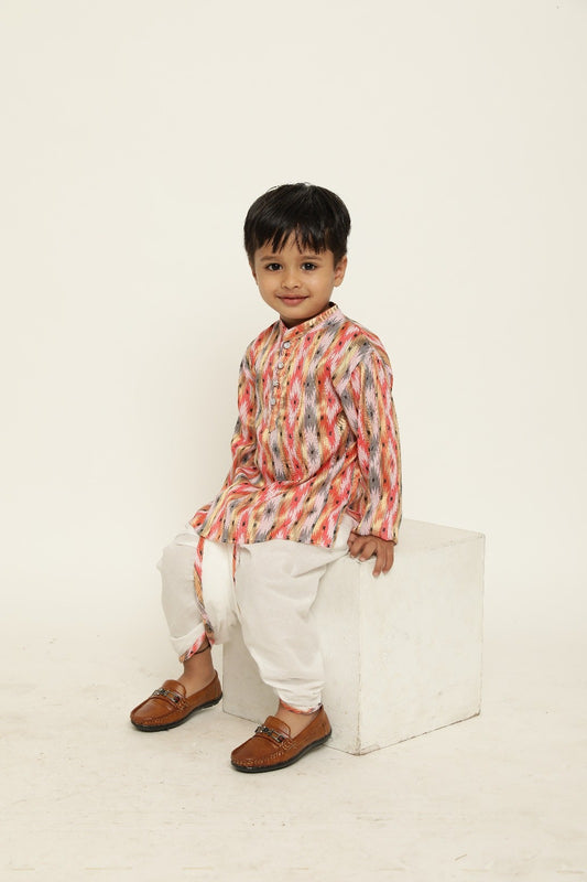 Father-Son Peach Ikkat Print Kurta Pajama Combo set