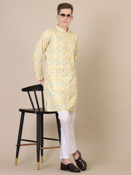 Father-Son Yellow Printed Kurta Pajama Combo set