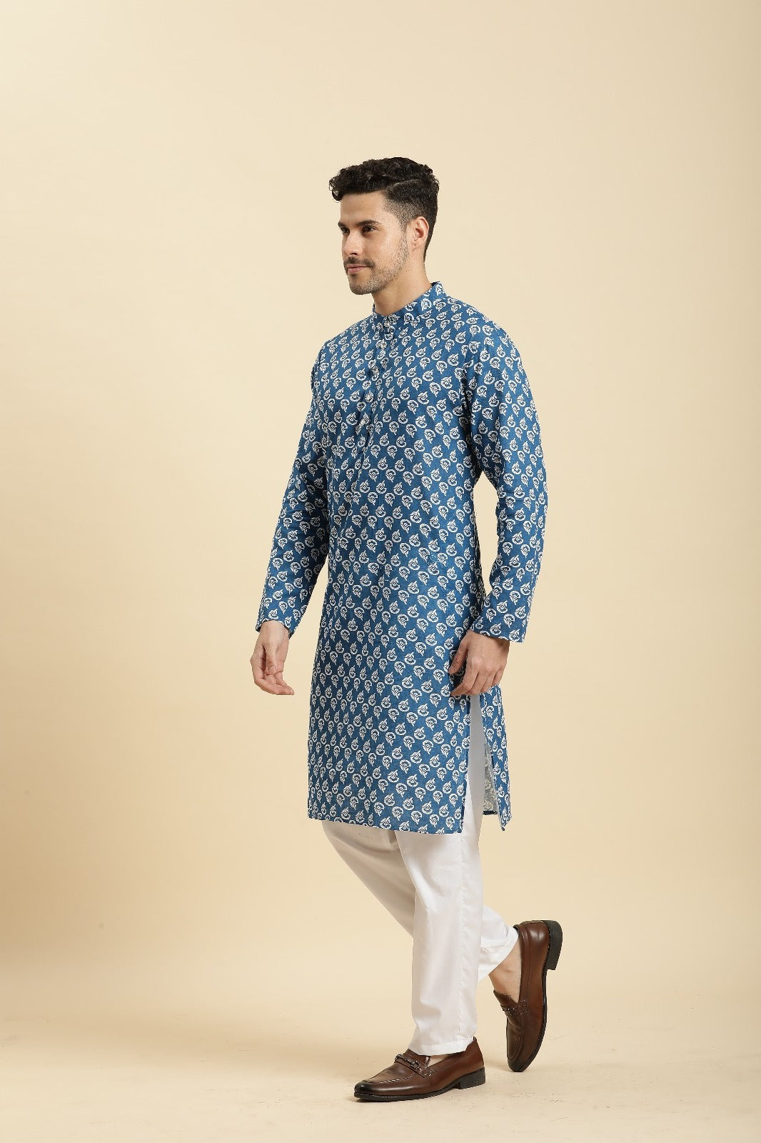 Celebrate timeless elegance and family bonding with our Father-Son Blue Printed Kurta Pajama Combo Set. Perfect twinning ethnic wear for weddings, festive gatherings, and family portraits.