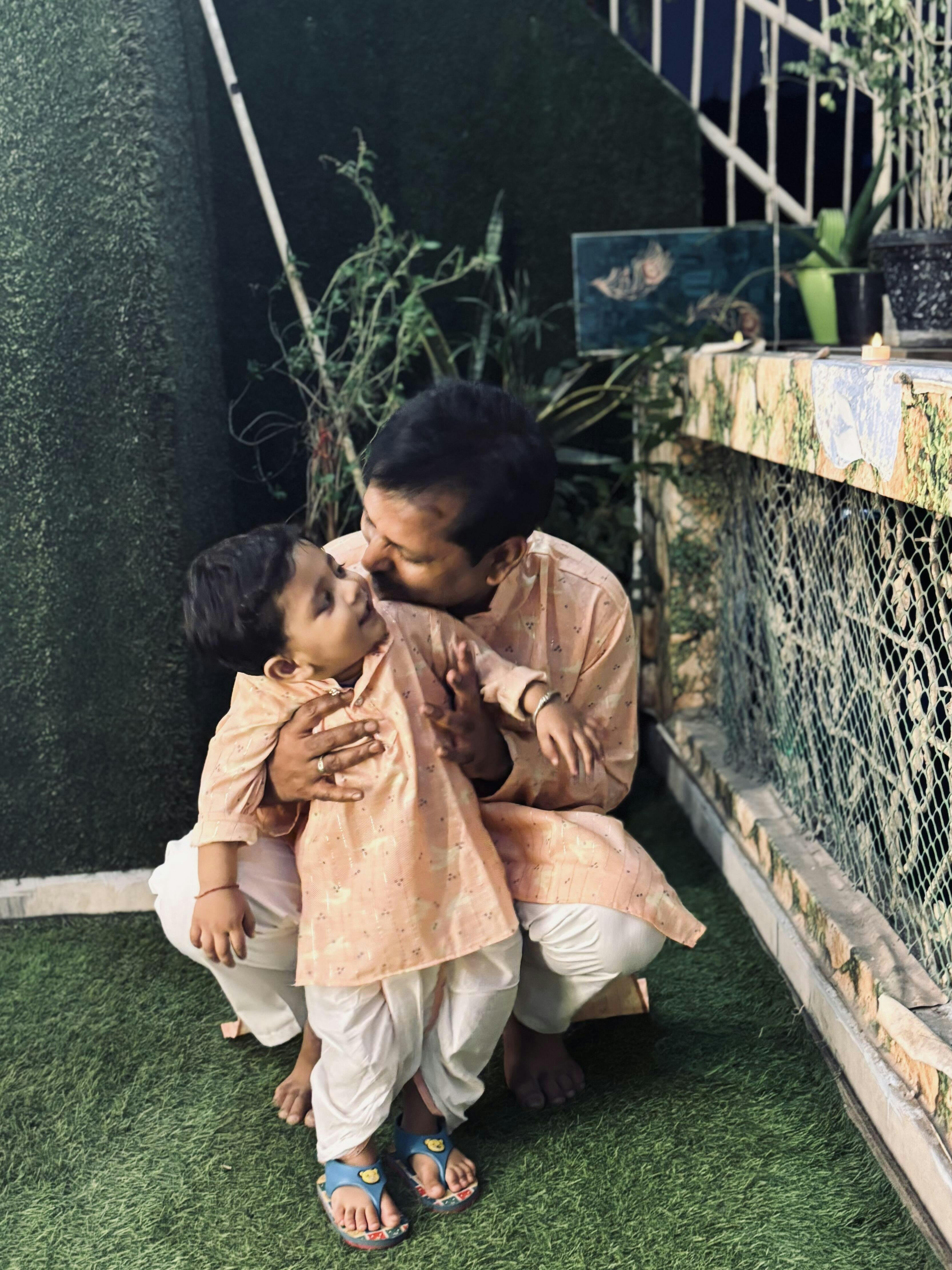 · 🎉 Son wears a festive dhoti while dad stays classic in a pajama