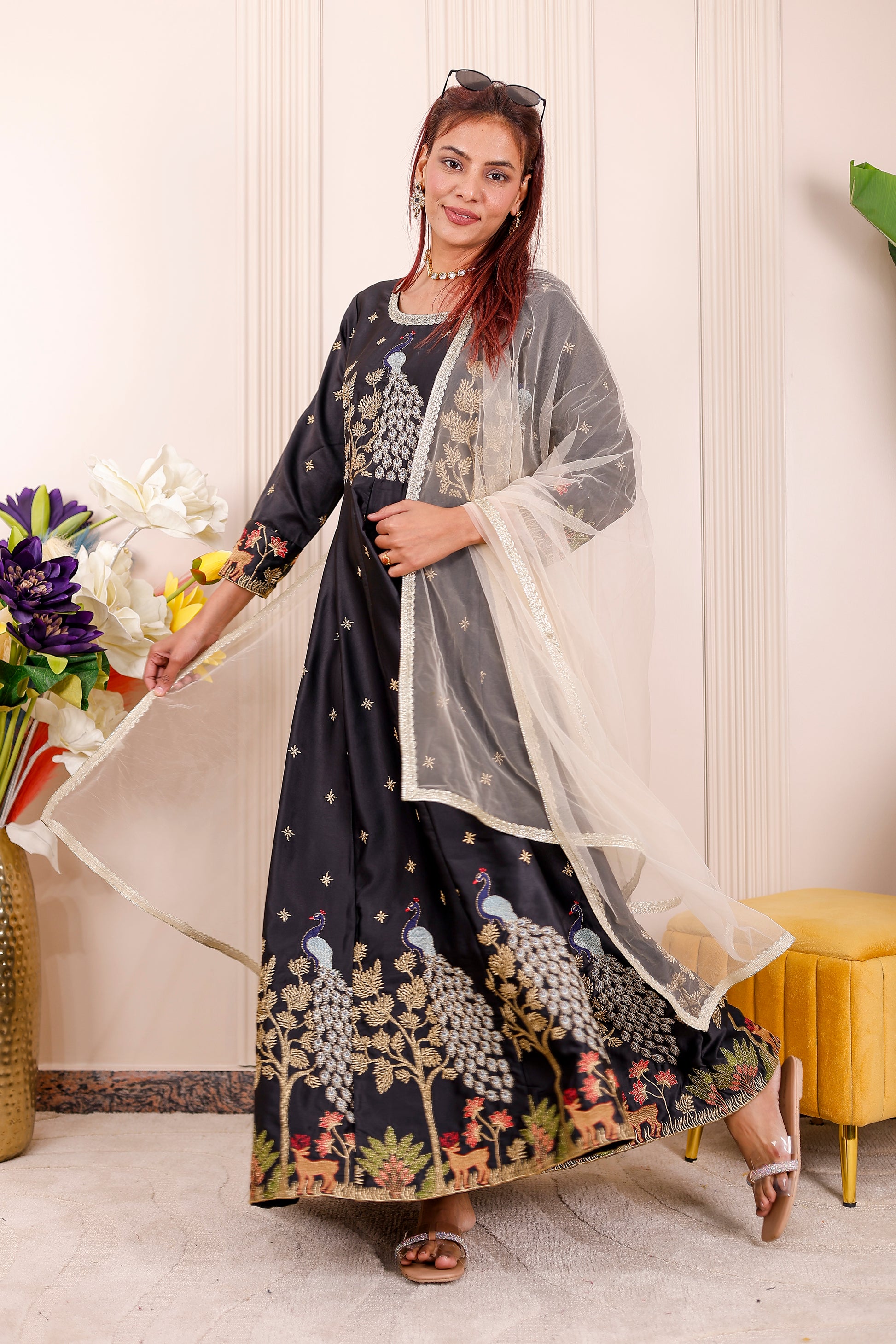 Midnight Black Peacock Embroidered Women dress Outfits π¦β¨π¨βπ©βπ§βπ¦