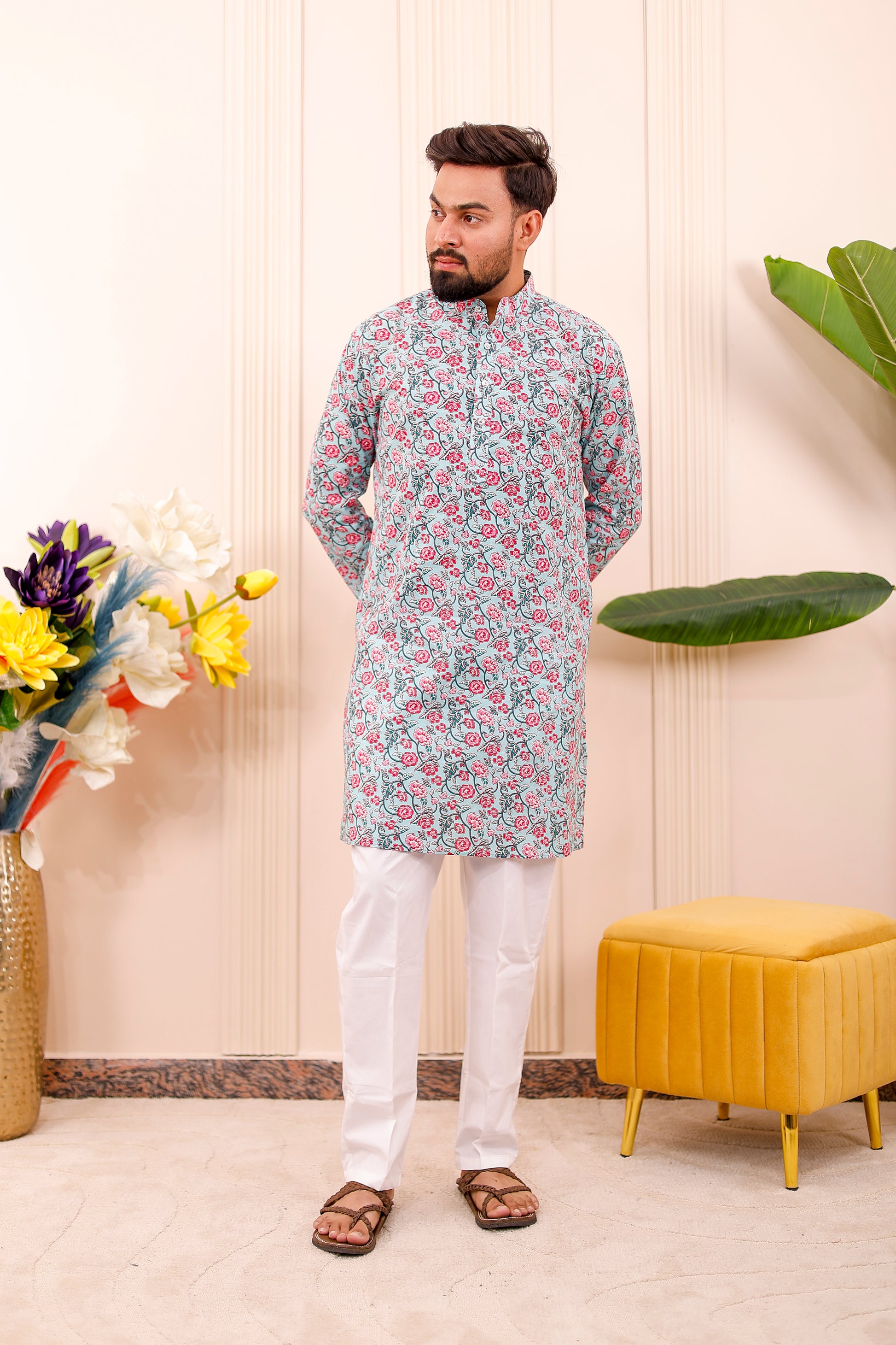 Floral Mint Festive | Couple Matching Kurta Outfit