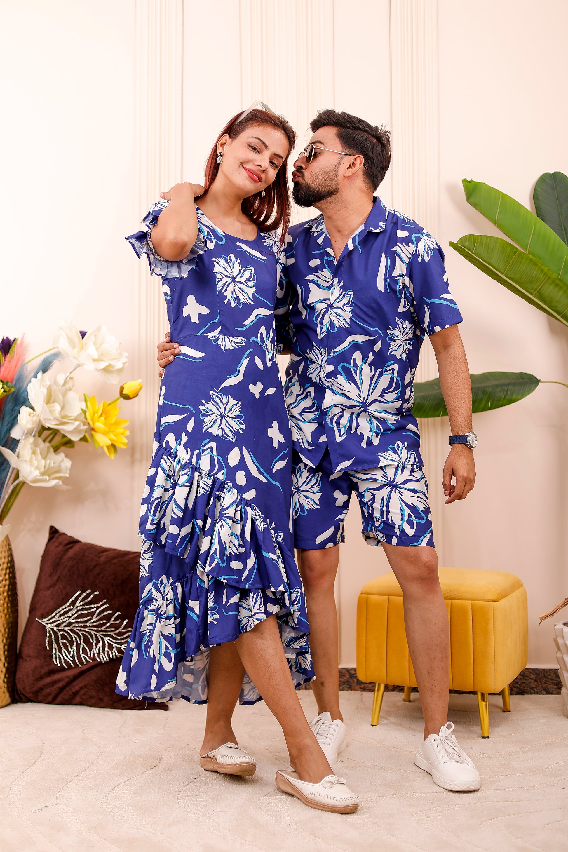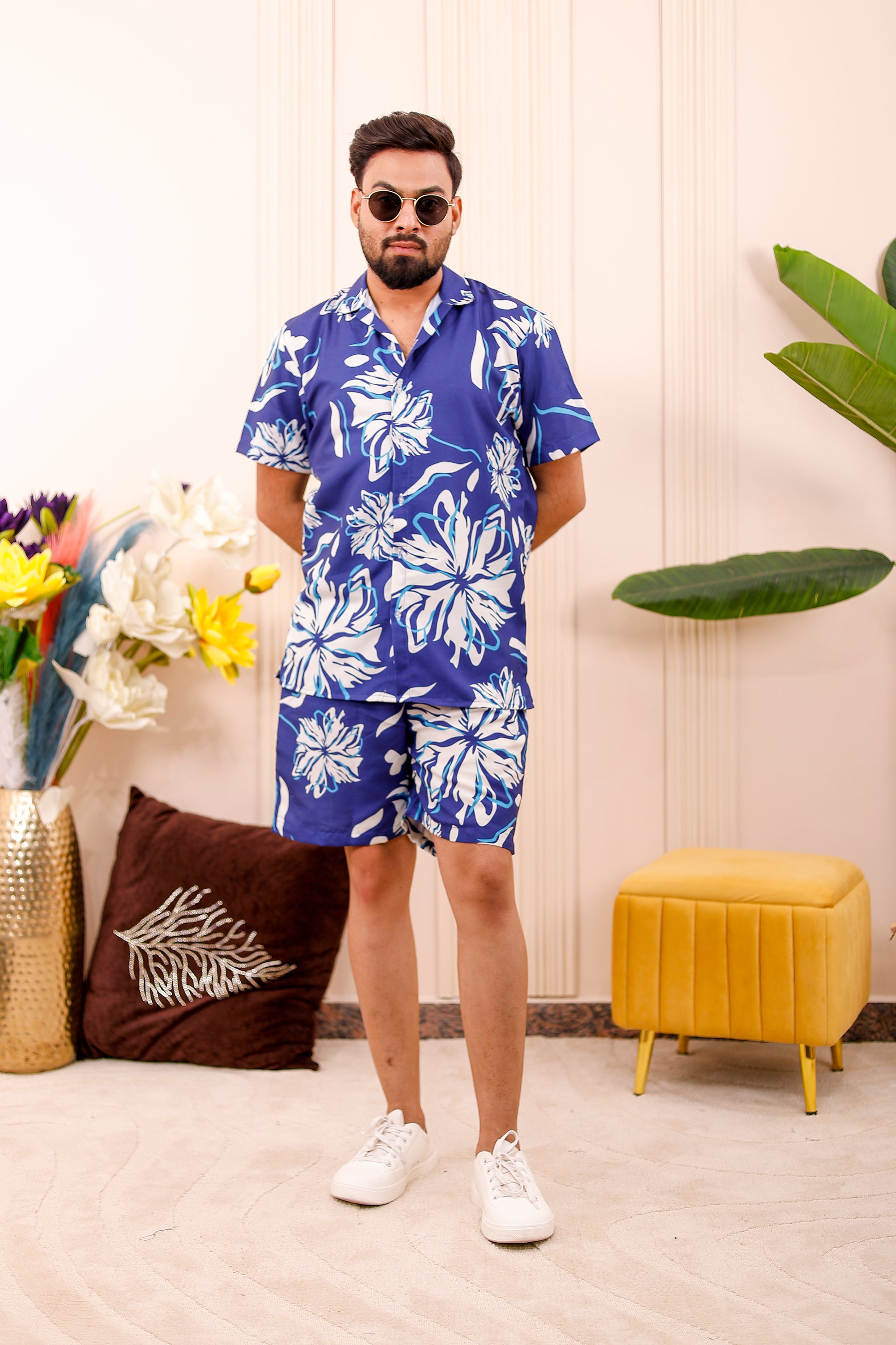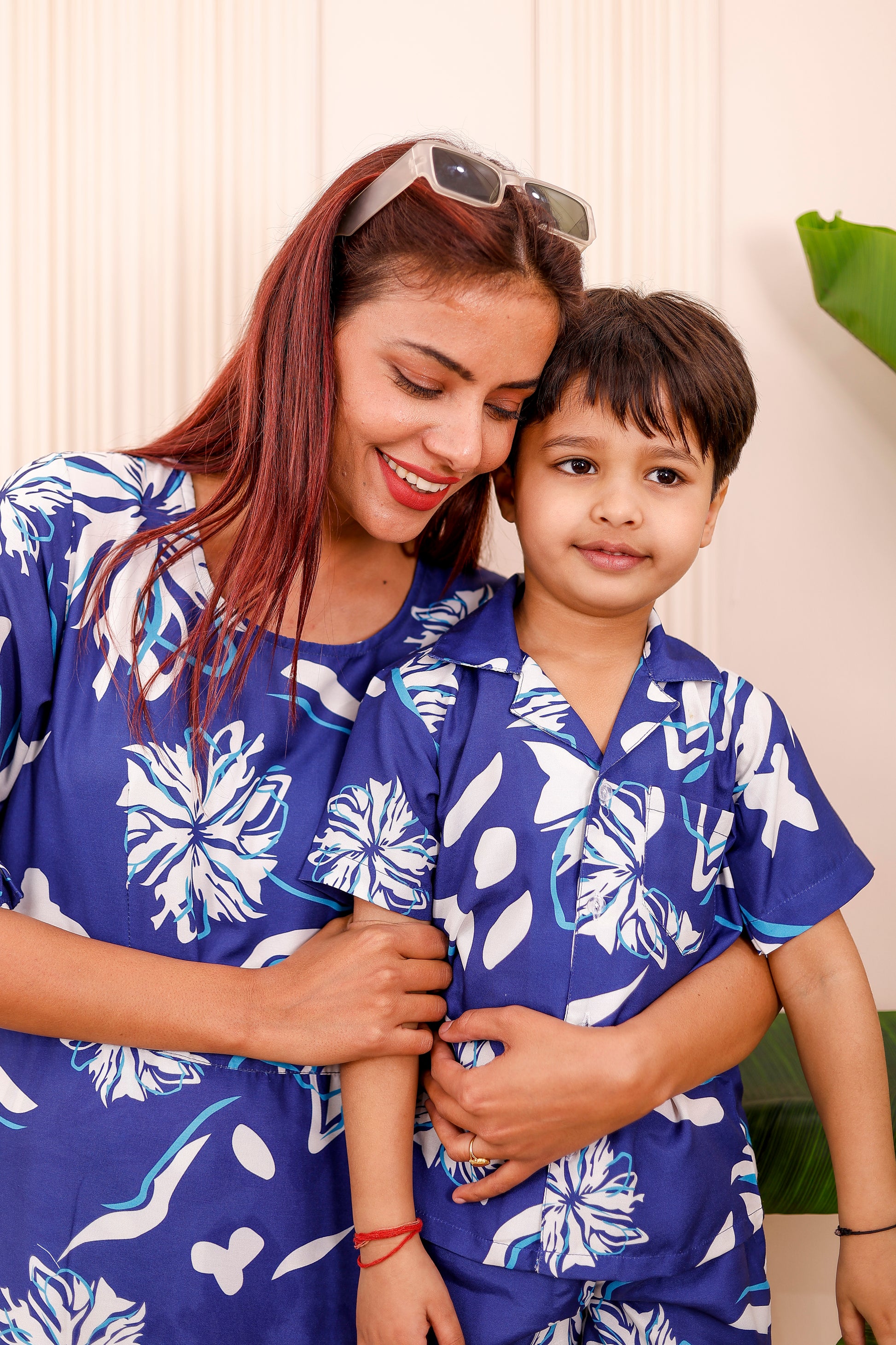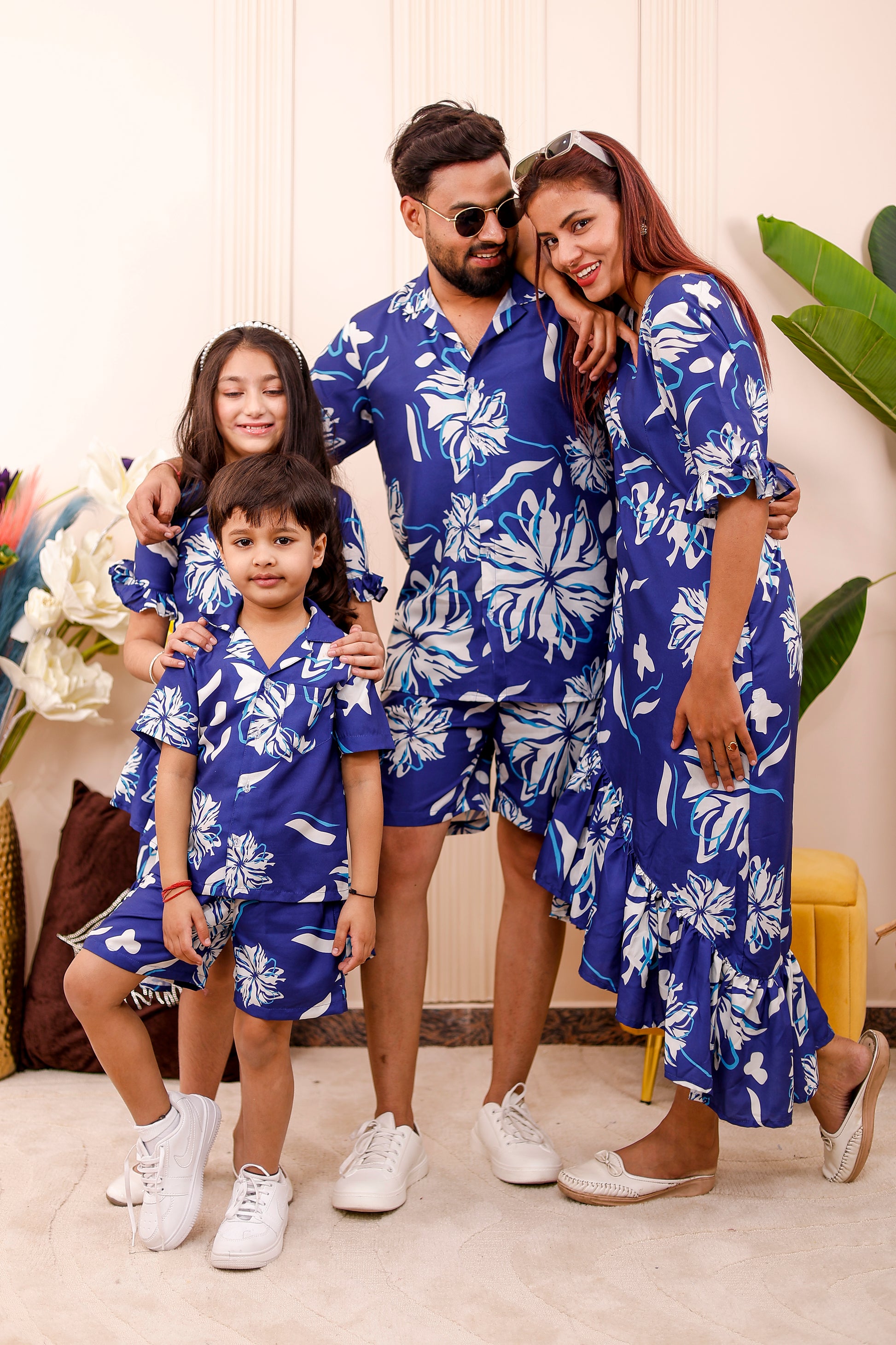 • Men & Boys: Matching royal floral printed co-ord set with shirt and shorts — comfortable and stylish for father-son twinning.