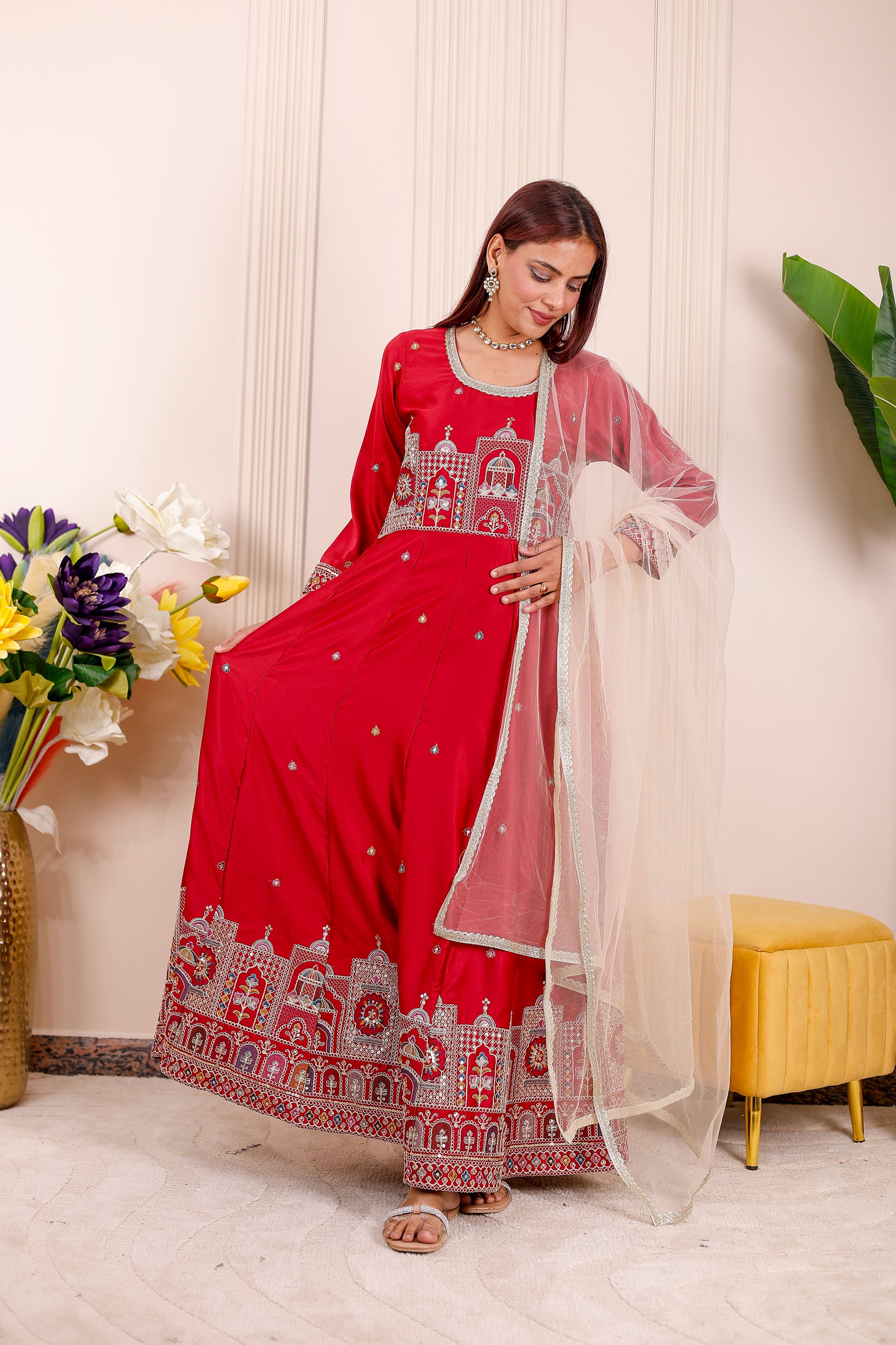 Shaahi Red Embroidered Women dress Outfits✨
